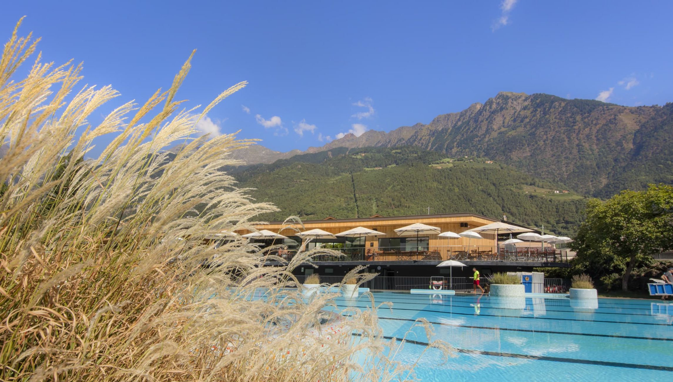 Durante i caldi mesi estivi potete rinfrescarvi nella piscina all'aperto di Lagundo.